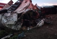 Caminhão tomba e motorista fica preso às ferragens na BR-470