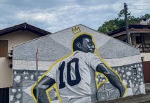 Artista desenha rei Pelé em muro de blumenauense torcedor do Santos