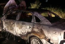 Carro é consumido pelas chamas na BR-470, em Indaial