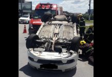 Condutor é hospitalizado após capotar veículo em Gaspar