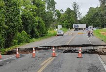 Saiba qual a previsão para conserto de cratera aberta na BR-470 em Indaial