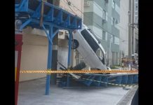 Carro cai de prédio e atinge mulher na calçada em Balneário Camboriú