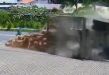VÍDEO - Homem fica ferido após ser derrubado por toras que caíram de caminhão...