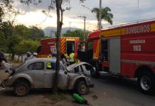 Dois homens ficam feridos após Fusca sair da pista e bater em muro de...