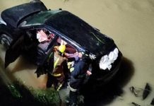Carro colide em ponte e cai em ribeirão na BR-470, no Vale do Itajaí