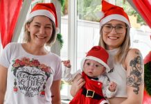 Vestido de Papai Noel, Kauan posou para as fotos junto da mãe e da avó ao lado da árvore de Natal