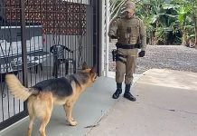 VÍDEO - PM resgata pastor alemão solto em rua de Blumenau