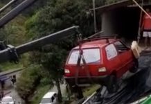 VÍDEO - Carros são retirados com guindaste após acesso ser destruído por deslizamento em...