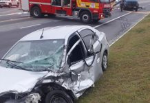 Mulher fica encarcerada após colisão com caminhão em Gaspar