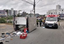 Homem é hospitalizado após tombamento de caminhonete em Blumenau