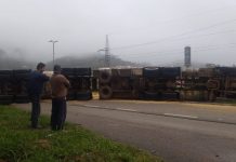 Caminhão tomba e interdita BR-470 no Alto Vale