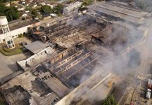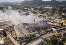 Após mais de 19 horas, bombeiros começam rescaldo em fábrica da Mormaii em Blumenau