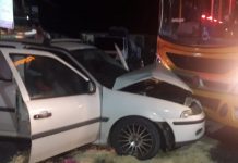 Ônibus e carro colidem e duas pessoas ficam feridas em Gaspar