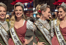 Gêmeas com diferentes reinados na Oktoberfest Blumenau celebram 40 anos da festa juntas