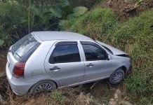 Ele bateu o carro contra um barranco