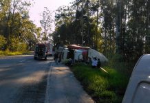 Carga de batatas fritas é saqueada após tombamento de caminhão na BR-470, em Ibirama