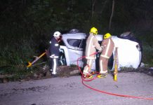 Carro de Blumenau tomba na BR-470 e duas pessoas ficam presas às ferragens