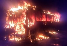 Ônibus do transporte coletivo é destruído por incêndio, em Brusque
