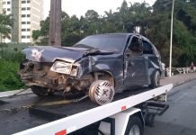 Motorista embriagado destrói mureta de ponte na Rua 7 de Setembro