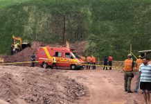 Após nove horas, bombeiros resgatam operário soterrado, em Blumenau