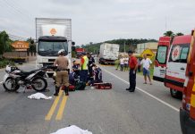 Mulher morre após moto colidir com caminhão, em Blumenau