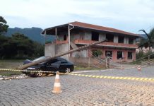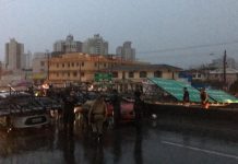 Estrutura com placas cai sobre carros na BR-101 durante temporal na Grande Florianópolis