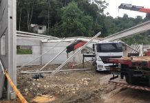 Cobertura de galpão em construção cede e dois ficam feridos, em Blumenau