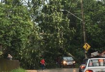 Chuva provoca alagamento e queda de árvore em Blumenau