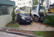 Leva-entulho se envolve em acidente com dois carros, em Blumenau