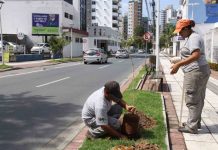 Faema planta mudas de árvores na rua Nereu Ramos, em Blumenau