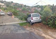 Carro derruba poste e interdita rua do bairro Itoupava Norte em Blumenau