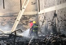 Bombeiros combatem novo foco de incêndio em galpão de empresa em Blumenau