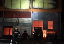 Bombeiros combatem incêndio em galpão de empresa em Blumenau