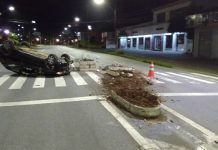 Motorista alcoolizada capota carro na rua Sete de Setembro, em Blumenau