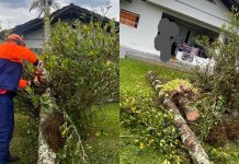 Corpo de Bombeiros removeu a árvore com motosserras e cordas