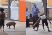 VÍDEO - Homem é flagrado passeando com porco de estimação em Blumenau