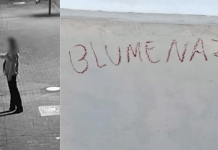 VÍDEO - Mulher é flagrada pichando frases na fachada da Havan em Blumenau